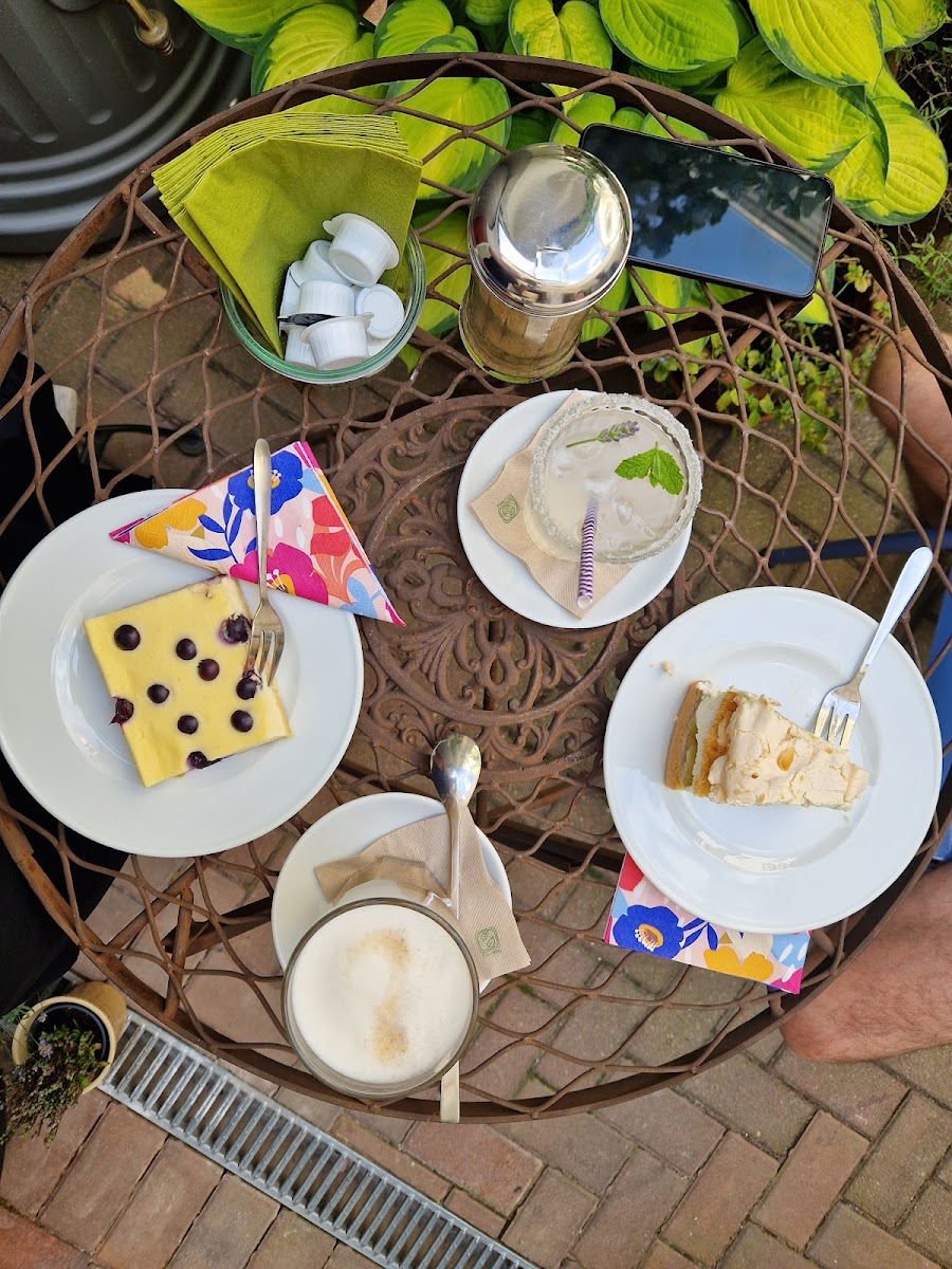 Moreover, if you're looking for something refreshing, their homemade lemonades and delicious ice creams come highly recommended. T. K. mentions that the drinks are "very good," which perfectly complements the rich flavors of the cakes. With both indoor seating that feels like a cozy retreat and an outdoor area that invites you to bask in nature’s beauty, Friede & Lotte captures the essence of what a perfect café should be.